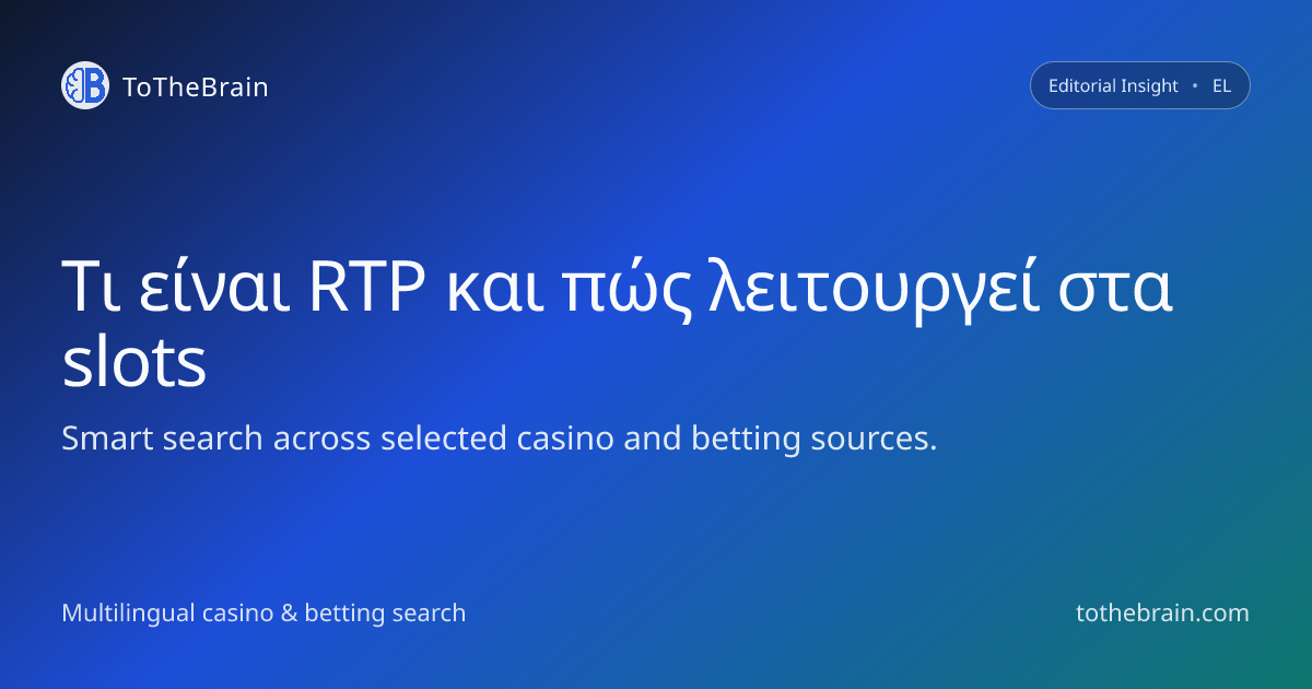 Το RTP (Return to Player) εκφράζει σε ποσοστό το θεωρητικό μακροχρόνιο ποσοστό επιστροφής ενός slot στους παίκτες. Αν ένα παιχνίδι έχει RTP 96%, αυτό σημαίνει ότι σε πολύ μεγάλο αριθμό περιστροφών επιστρέφει κατά μέσο όρο 96€ για κάθε 100€ συνολικών πονταρισμάτων, ενώ τα 4€ μένουν στο καζίνο ως μαθηματικό πλεονέκτημα.